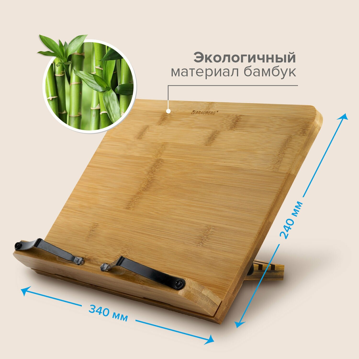 Подставка для книг и планшетов большая бамбуковая BRAUBERG, 34х24 см, регулируемый наклон, 237896 информация:
