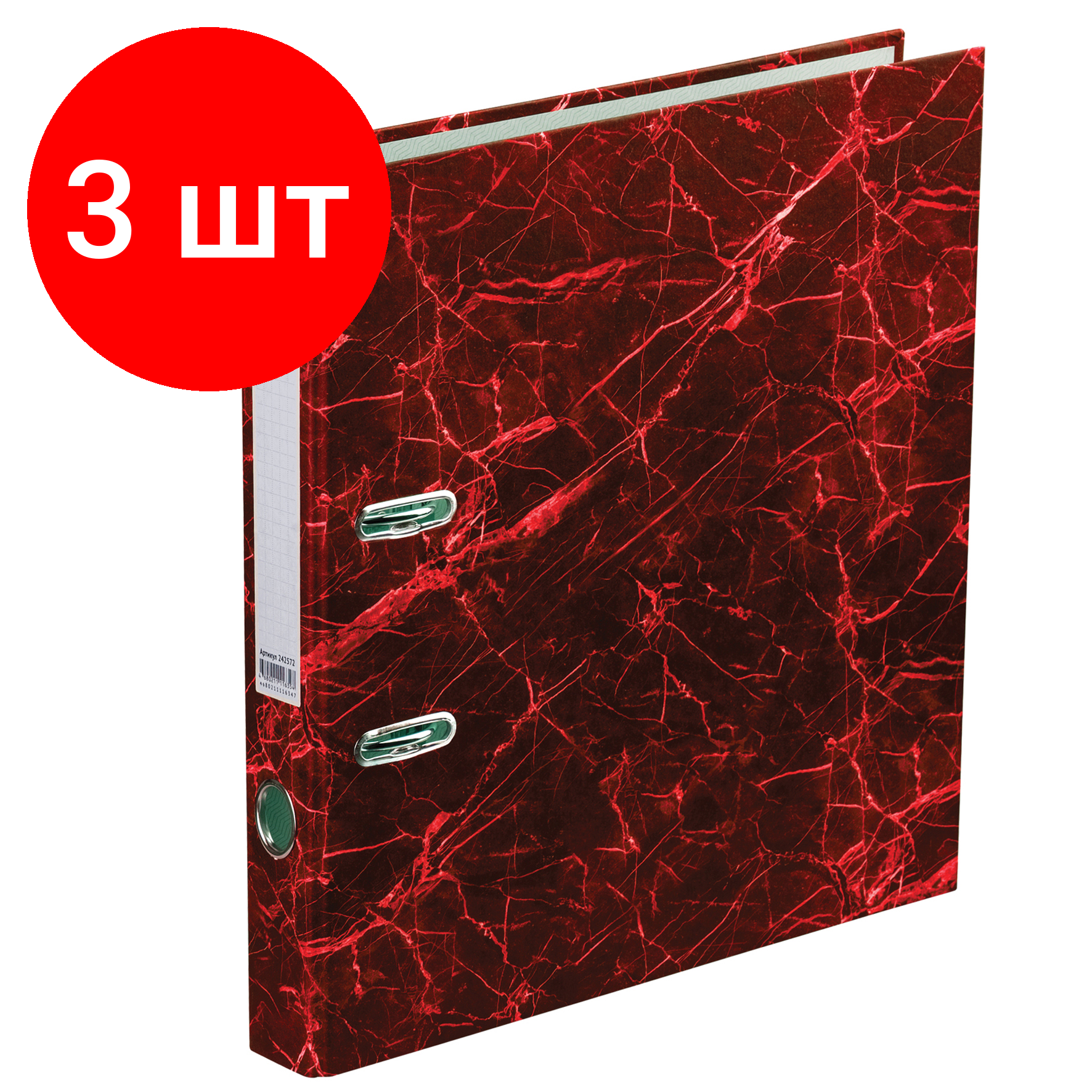 10 цен на Комплект 3 шт, Папка-регистратор OfficeSpace, 50мм, мрамор, красная