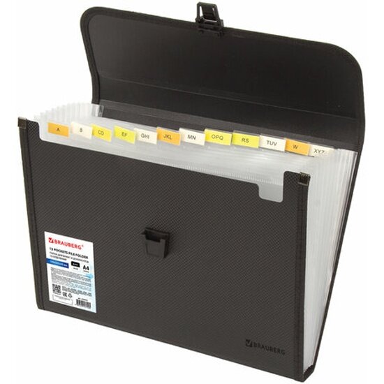 Папка Brauberg "HIT" для бумаг и документов с замком и 13 отделениями, А4, пластик, черная информация: