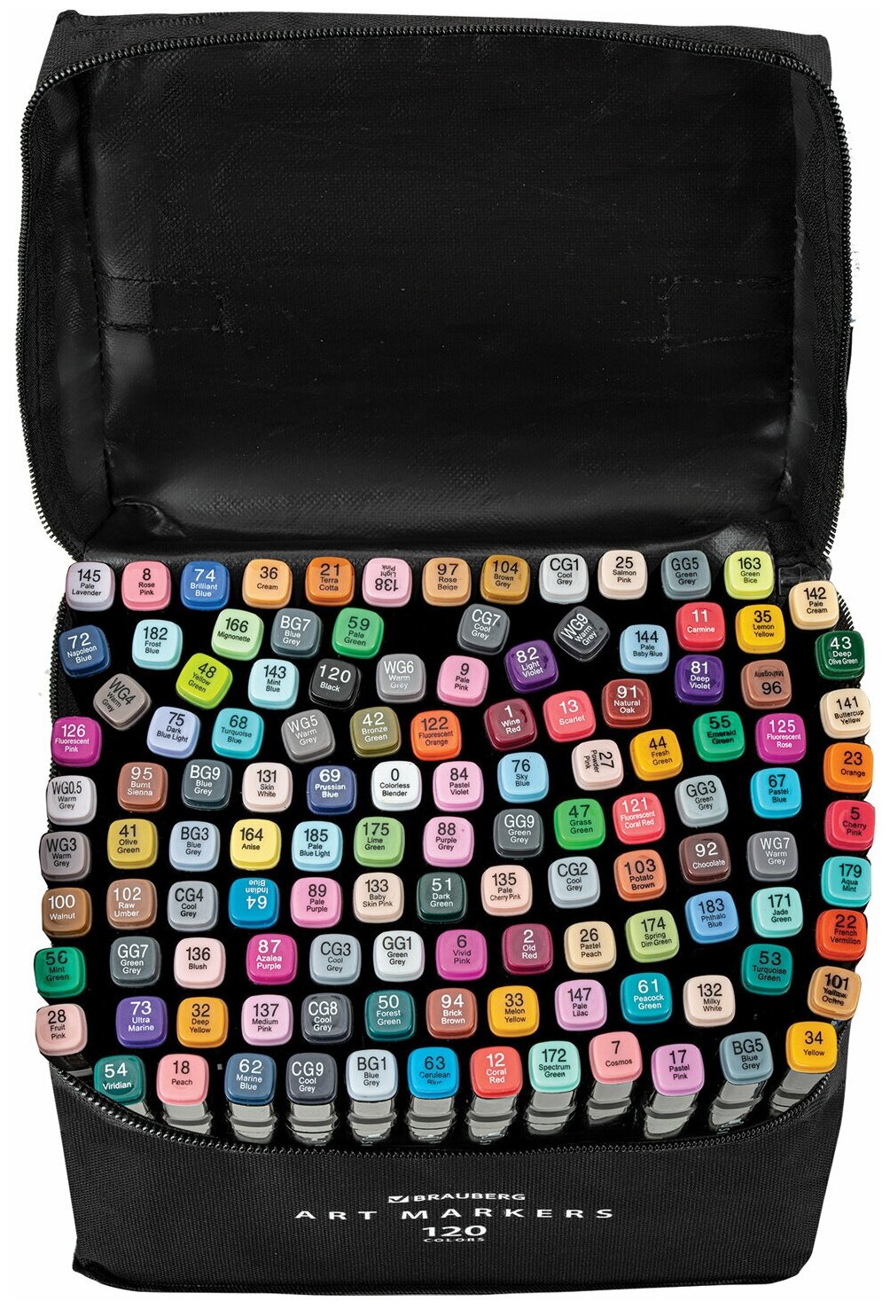 Маркеры для скетчинга двусторонние, набор 120 шт, текстильный чехол, BRAUBERG, 152234, 1 набор в компл. информация: