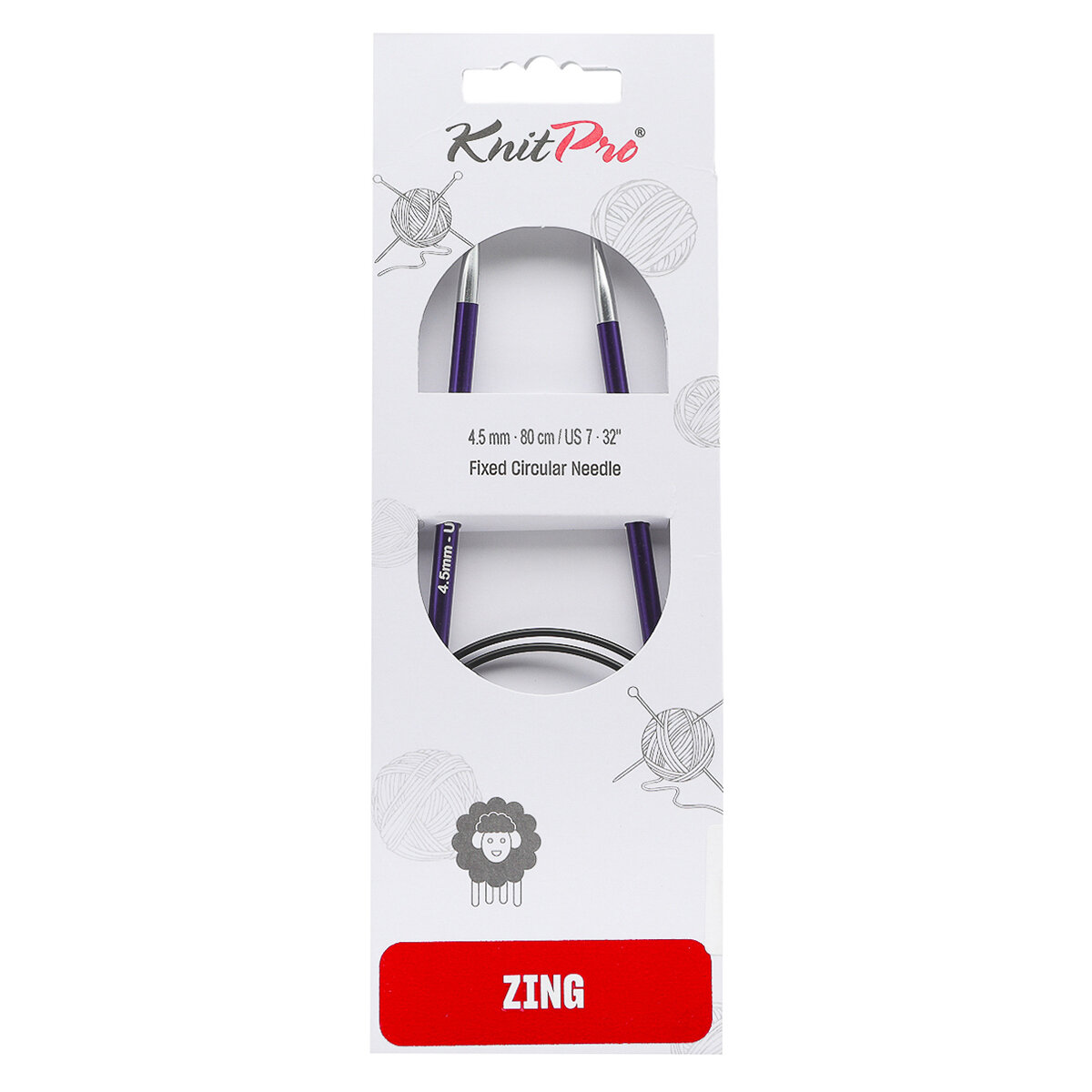 Отзывы на Спицы круговые KnitPro Zing 4,5 мм*80 см, алюминий, цвет иолит (фиолетовый)