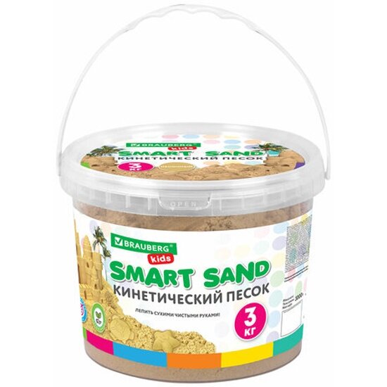 Кинетический песок для детей и малышей набор 3 кг с ведром для лепки, песочный, Brauberg Kids, 665479