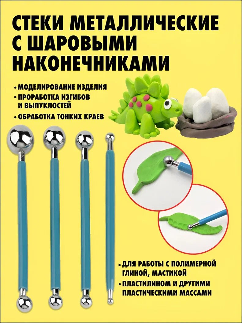 10 цен на Набор стеков для лепки и моделирования AXLER художественные двухсторонние, петля, шарики из металла и деревянные лопатки