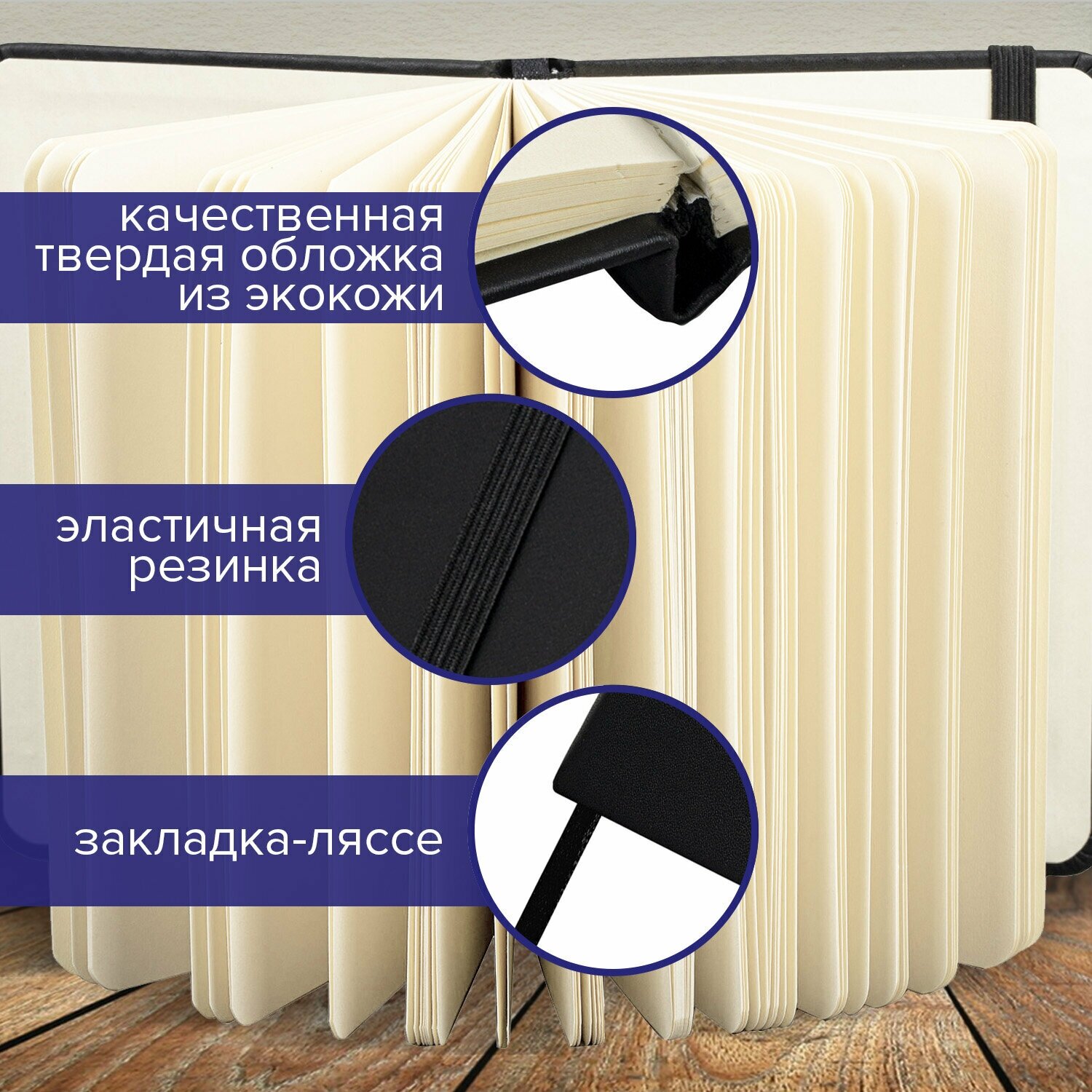 10 цен на Скетчбук, слоновая кость 140 г/м2 90х140 мм, 80 л, КОЖЗАМ, резинка, BRAUBERG ART_CL, черный, 113188