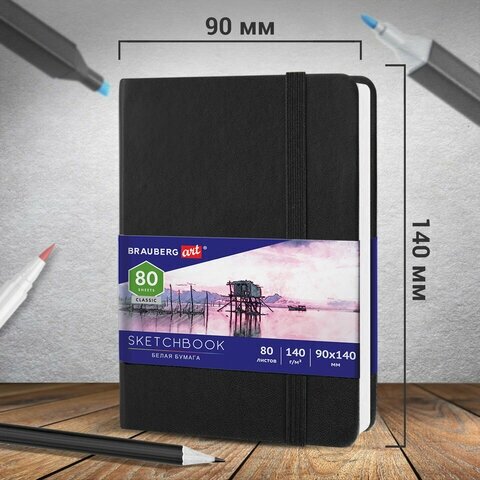 Скетчбук для эскизов и графики BRAUBERG Classic 14 х 9 см (9х14 см), 140 г/м², 80 л.