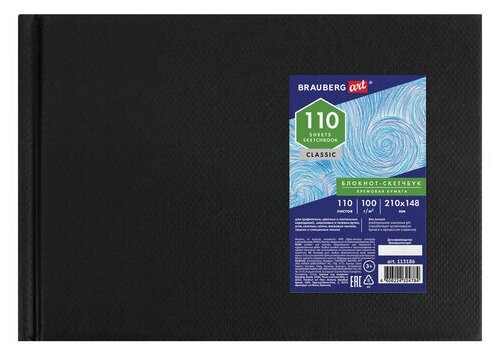Скетчбук BRAUBERG Art Classic 21 х 14.8 см (A5), 100 г/м², 110 л. 113186