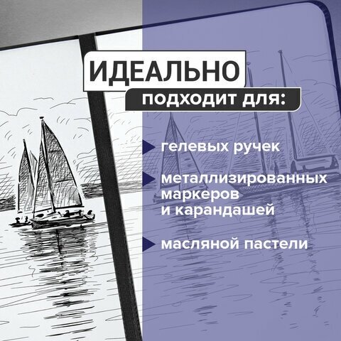 Скетчбук для маркеров Brauberg бумага ВХИ 200 г/м2 210х297 мм, 30 л, гребень, твердая обложка, черная, , 115080 455 ₽
