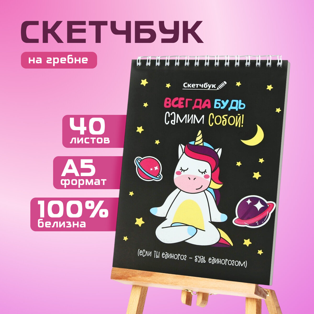10 цен на Скетчбук мини для рисования «Будь самим собой» А5, 40 л, черный