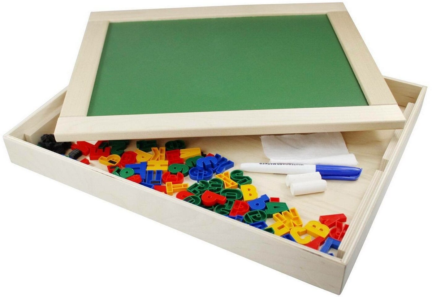 | В комплект входит | доска двухсторонняя (меловая и маркерная) – 1 шт. (32 х 40,5 см.), поддон - 1 шт. ( 42,5 см.х 33,5 см.), мел – 2 шт. , тряпочка – 1 шт., маркер на водной основе - 1 шт., набор пластиковых букв, цифр и знаков на магнитах - 79 шт. (высота букв 2,5 см.) |