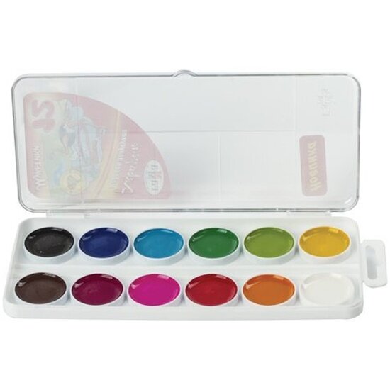 Комплект 15 шт, Краски акварельные гамма "Мультики", 12 цв., медовая, без кисти, пластиковый корпус, европодвес, 211046_12 3 353 ₽