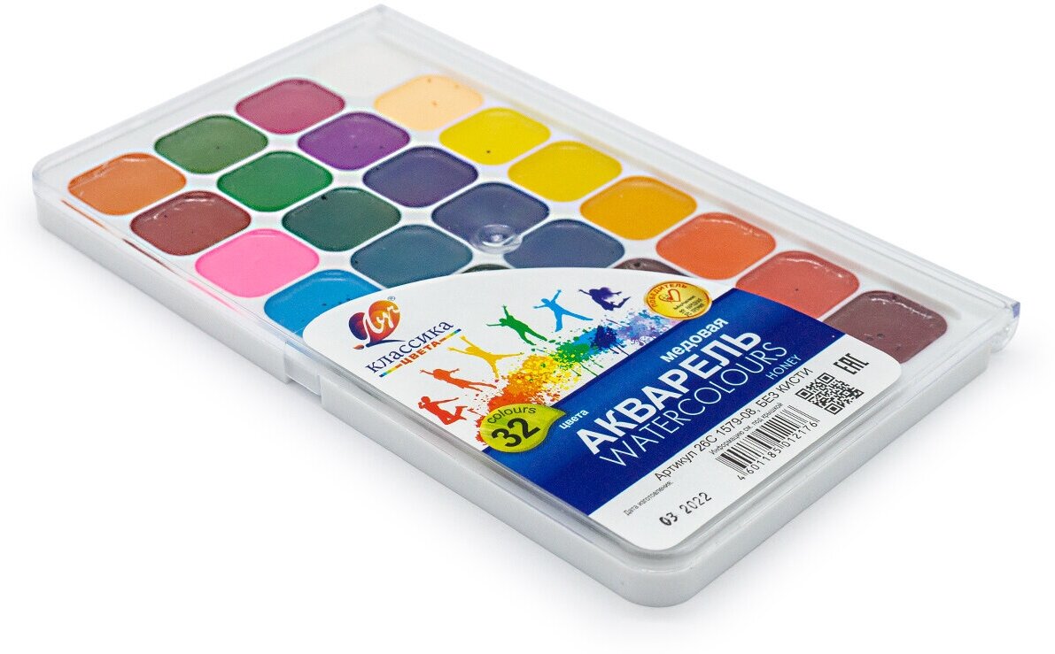 Краски акварельные для рисования 'Классика', набор 32 цвета, без кисти, Луч информация: