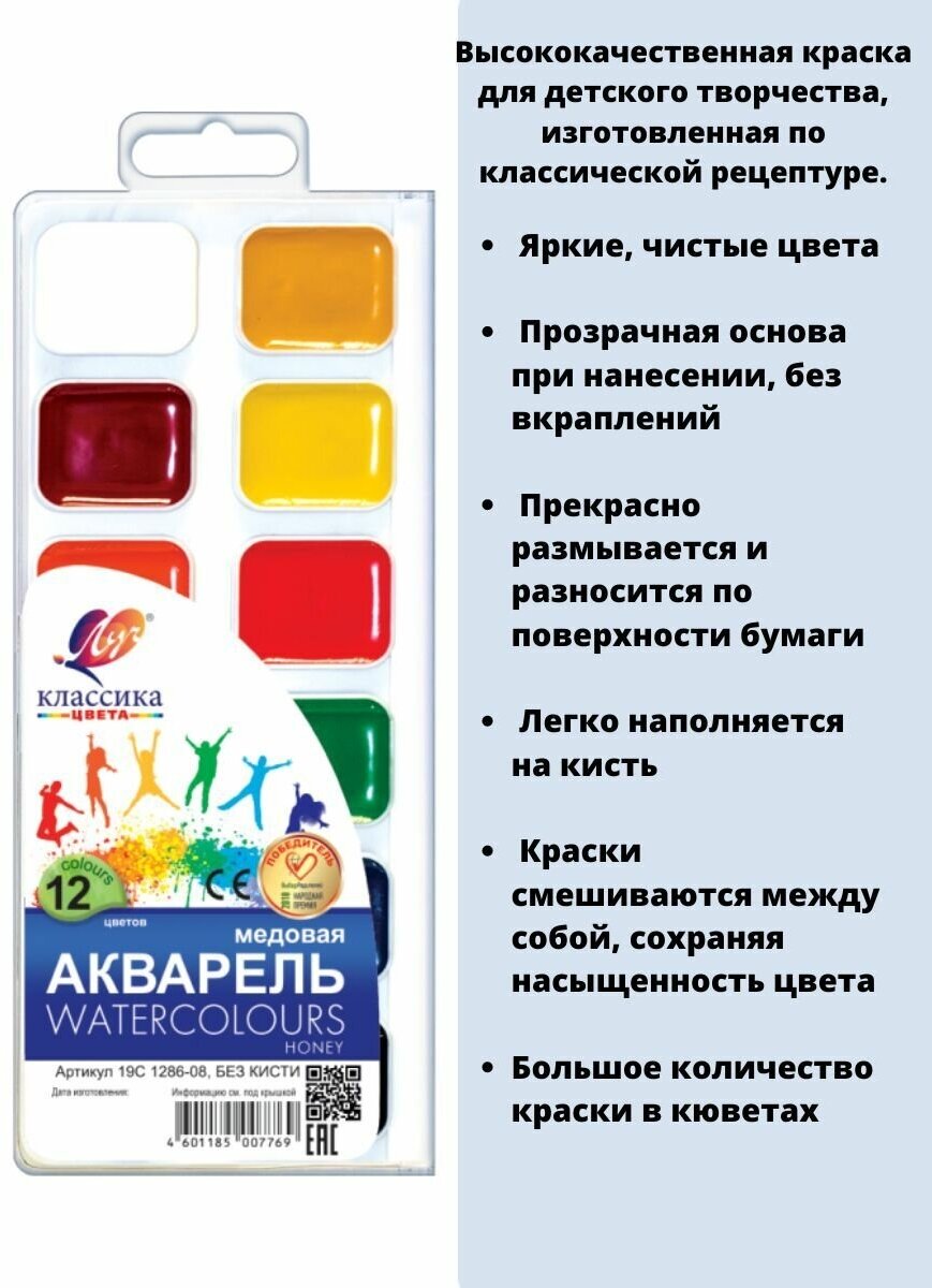 Луч, Акварель "Классика" 12 цв. без кисти информация: