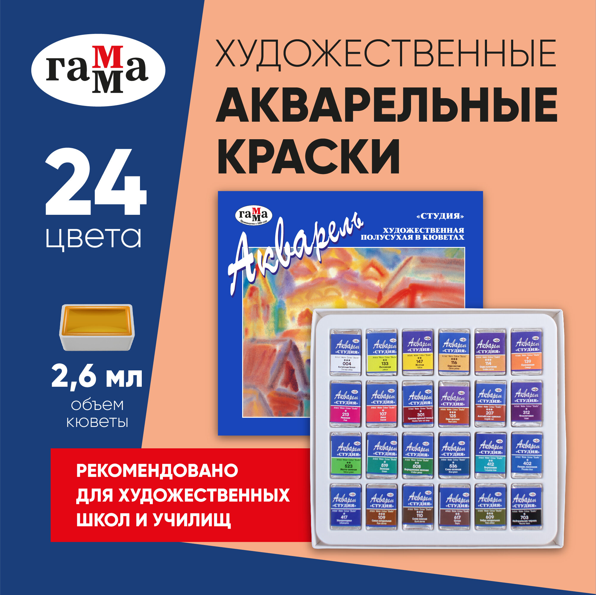 Краски акварельные для рисования Гамма "Студия" художественные, 24 цвета 627 ₽