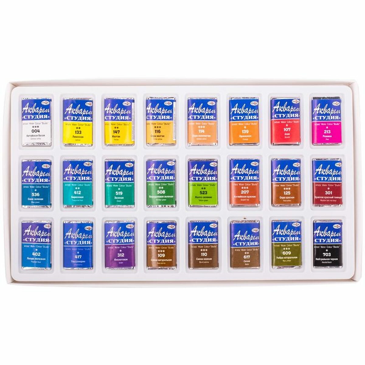 Краски акварельные художественные 24 цвета Гамма "Студия", кювета 2,5мл (215001), 14 уп. информация: