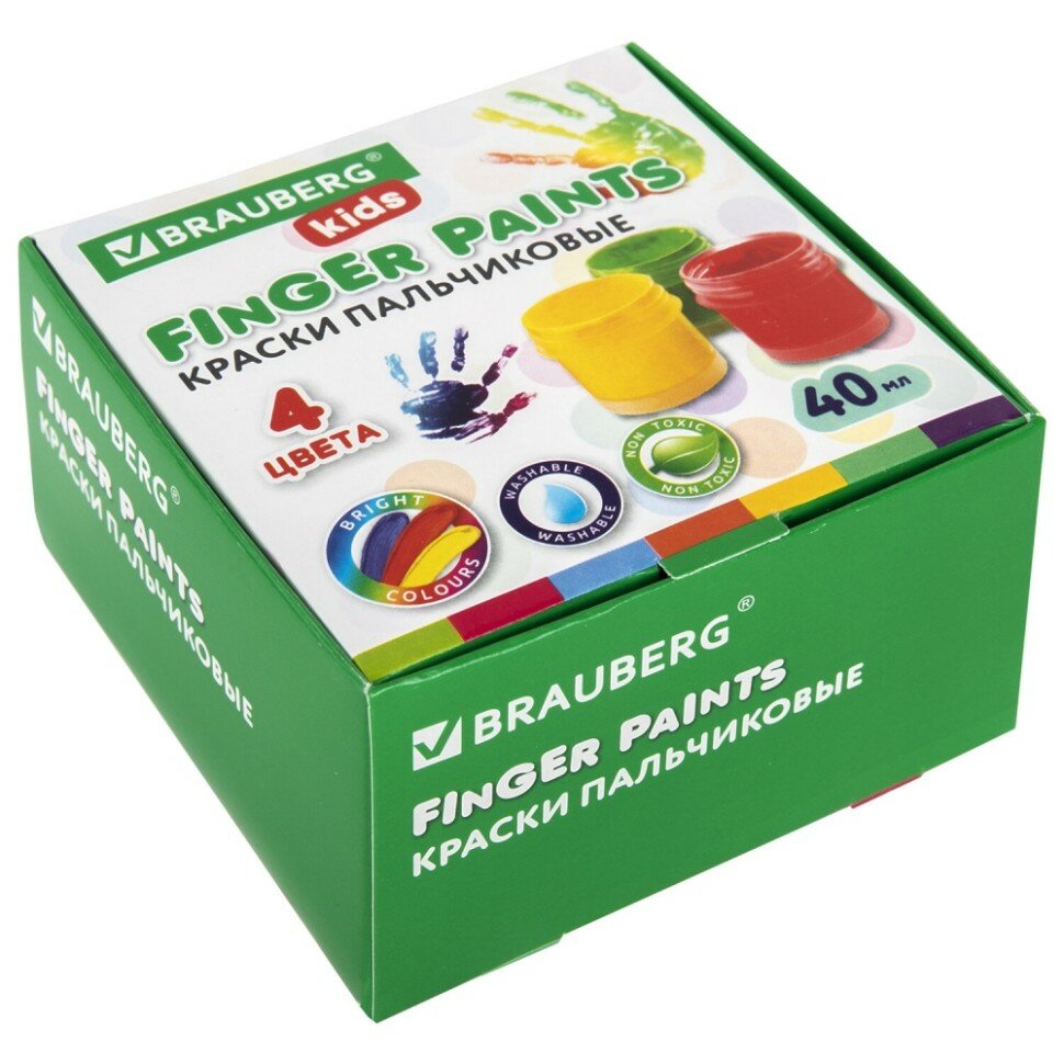 Краски пальчиковые 4 цвета Brauberg Kids, по 40мл, 1+ (192278) 543 ₽
