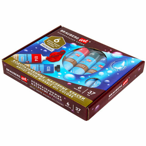 Отзывы на Комплект 2 шт, Краски масляные водоразбавимые художественные, 6 цветов по 37 мл в тубах, BRAUBERG ART PREMIERE, 192292