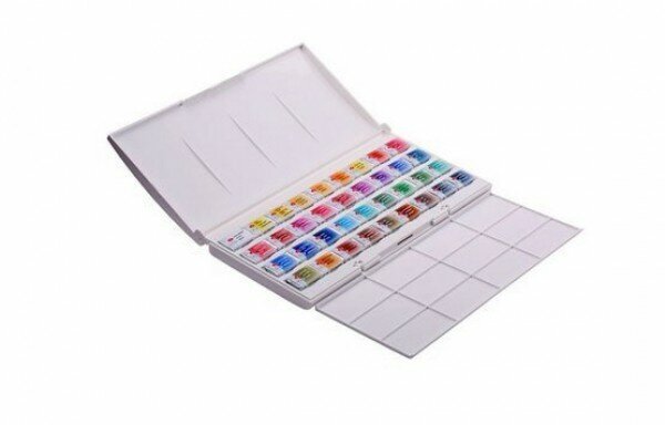Акварель Зхк Белые ночи художественная 36 цветов, кюветы, пласт. упак., палитра