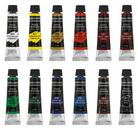 Краски акриловые Brauberg 12 цветов по 12 мл, художественные, профессиональная серия .