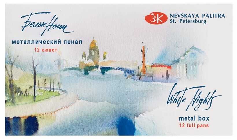 Краски акварельные Белые Ночи 12 цветов в кюветах металл. кор информация: