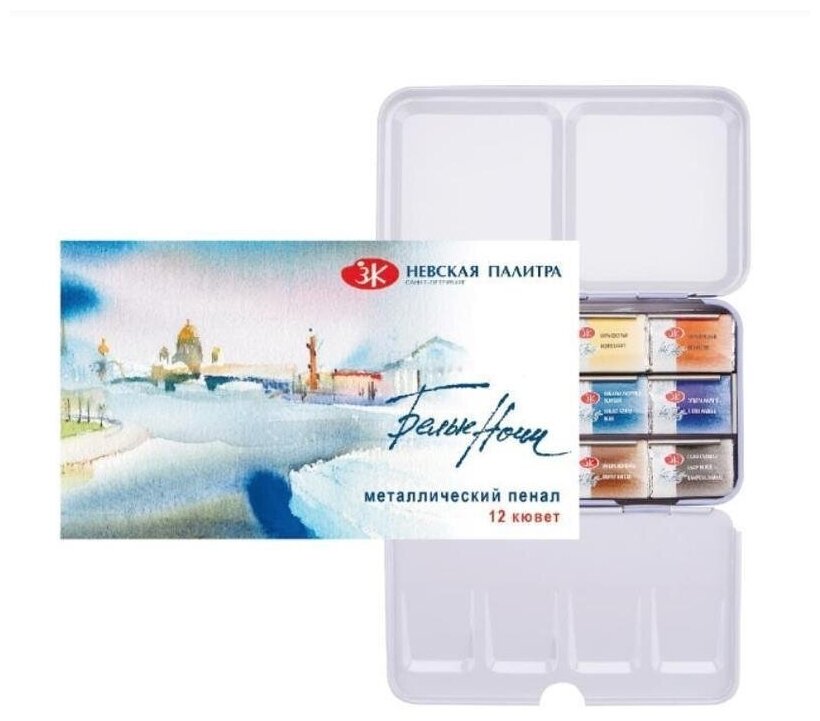 Белые ночи / Краски акварельные в кюветах, 12 цветов по 2,5 мл, ЗХК Невская палитра
