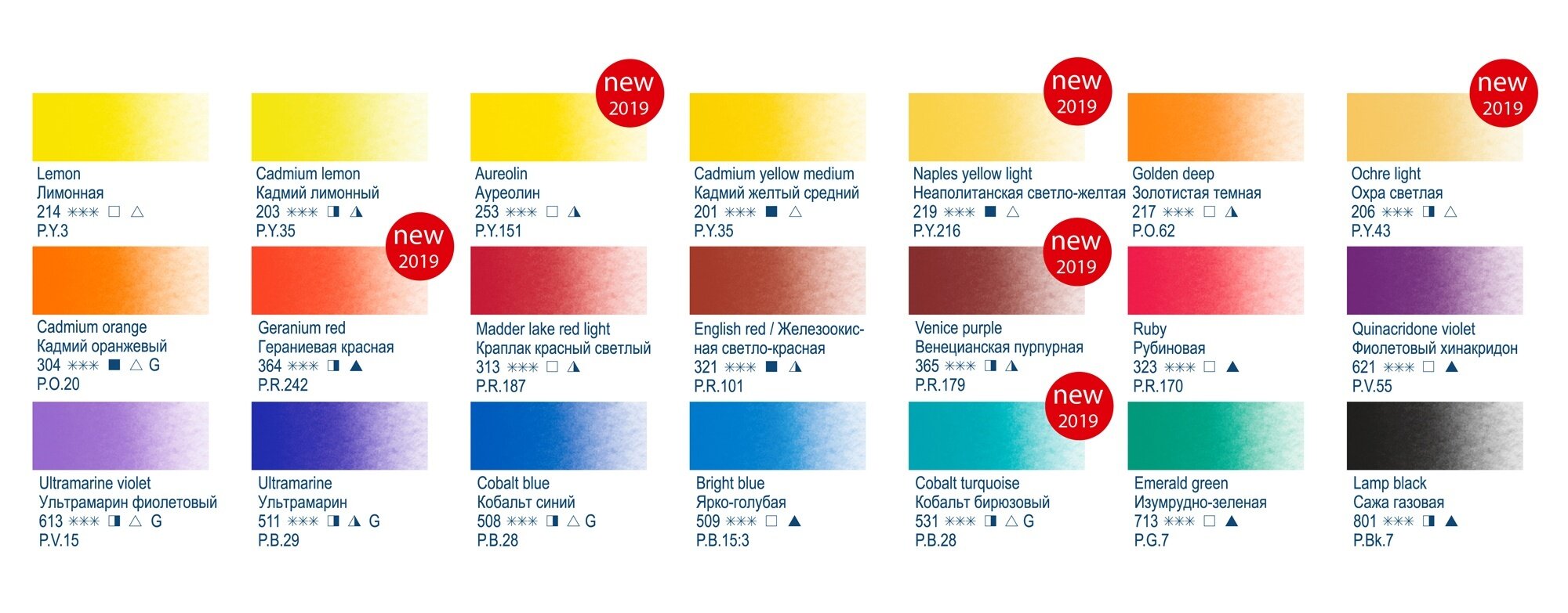 | Дополнительная информация | цвет - голубой или ярко-голубой, зеленая умбра, изумрудно-зеленый или зеленый оригинальный, кадмий желтый средний, кадмий красный светлый, кадмий лимонный, карминовый, нейтрально-черный, охра желтая, ультрамарин, умбра жженая или марс коричневый; упаковка: пластиковый пенал, картонная коробка |