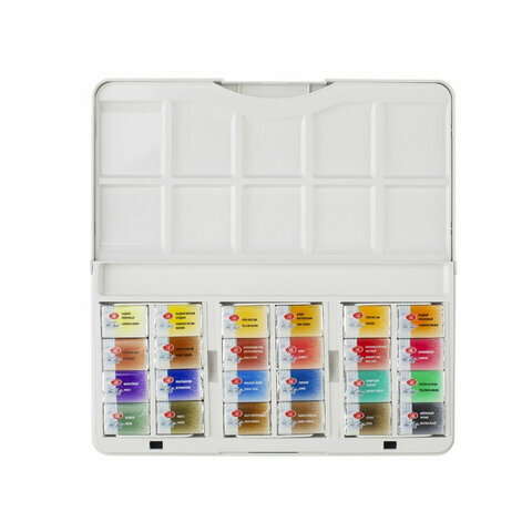 Акварель художественная в кюветах, 24 цвета х 2.5 мл, ЗХК "Санкт-Петербург", пластиковая палитра, 1942017