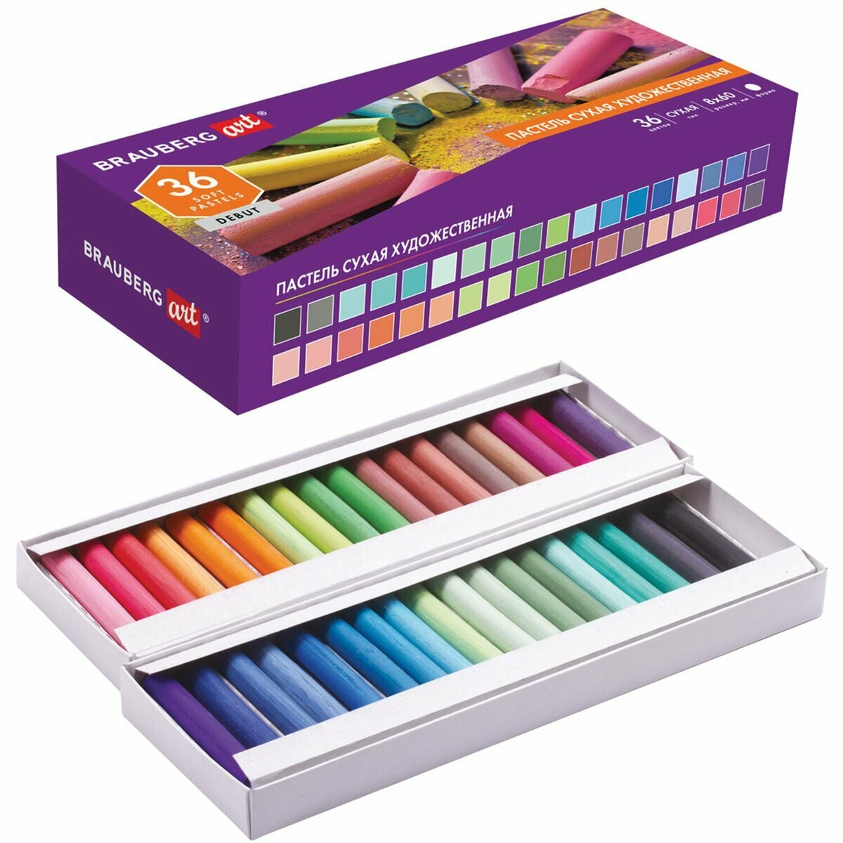 Пастель сухая художественная для рисования, набор красок 36 цветов, круглое сечение, Brauberg Art Debut, 181461