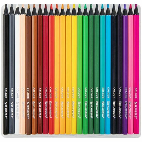 Карандаши Brauberg цветные , 24 цвета, черное дерево, грифель мягкий 3,3 мм, 181858 информация: