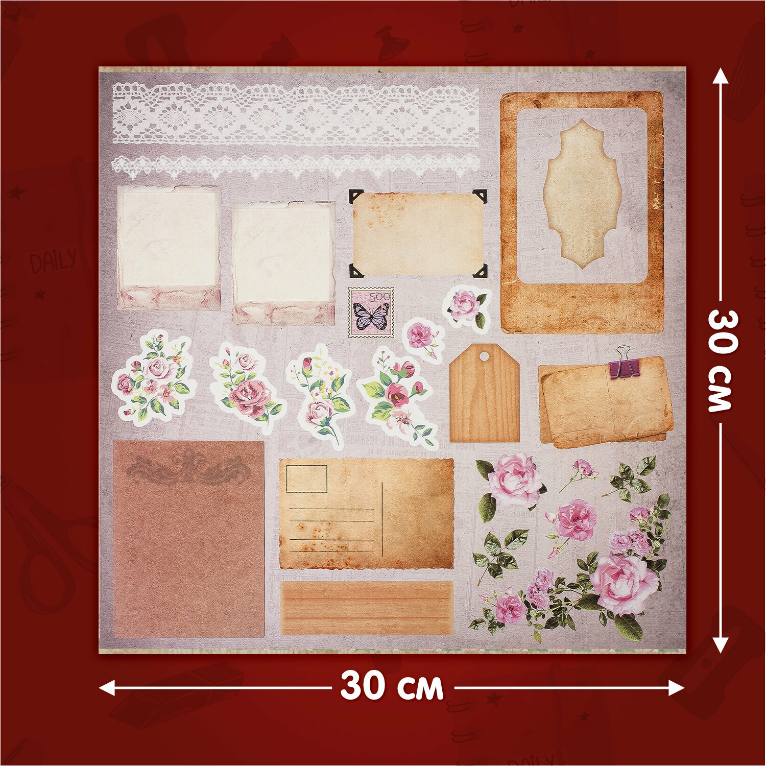 Бумага для скрапбукинга 15х15 см "Винтаж", двусторонняя, 12 листов, 12 дизайнов