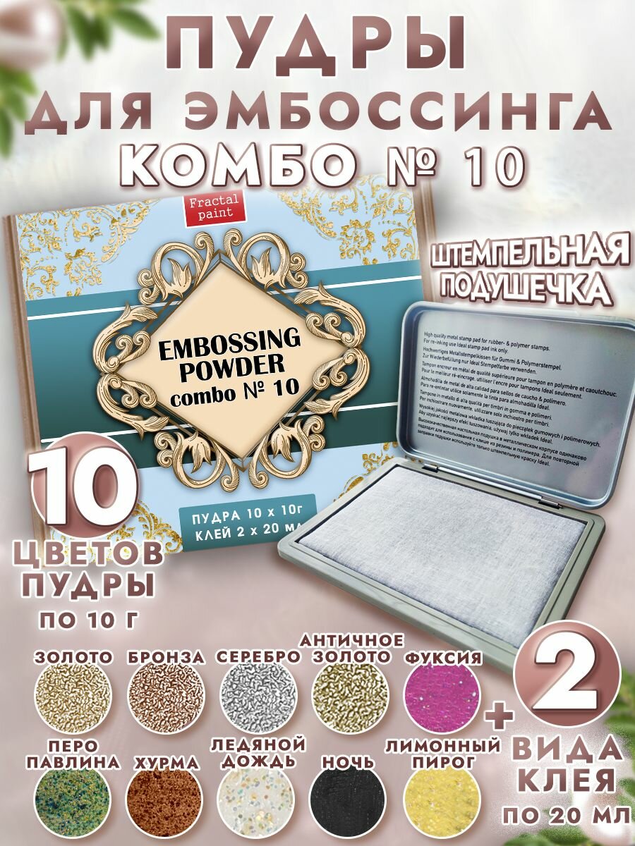 Комбо №10 (13 шт) пудры для эмбоссинга Fractal Paint, для скрапбукинга информация: