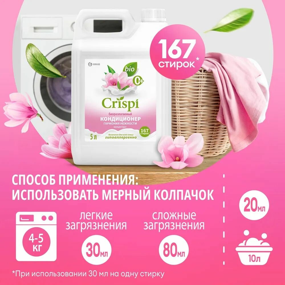 Кондиционер для белья GRASS CRISPI "Гармония нежности" 5л, 167 стирок информация: