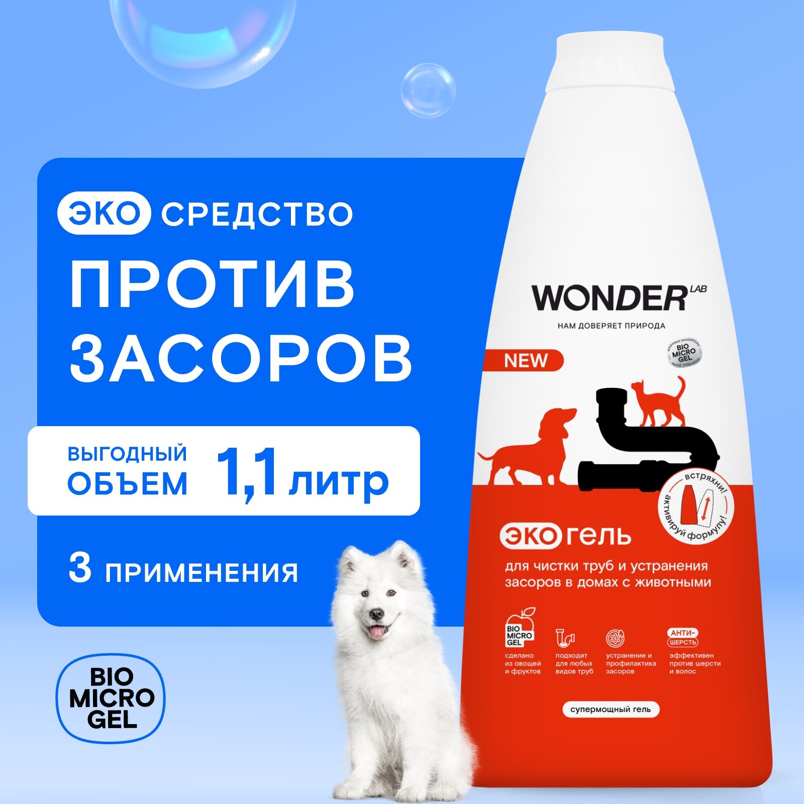 Эко средство для прочистки труб и устранения засоров в домах с питомцами WONDER LAB от шерсти животных в трубах, 1100 мл 419 ₽