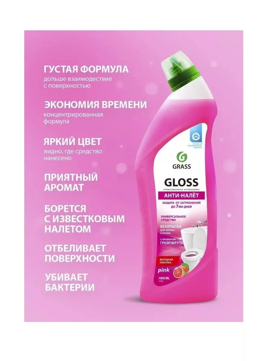 10 цен на Чистящий гель для ванны и туалета Gloss pink 750мл 125543