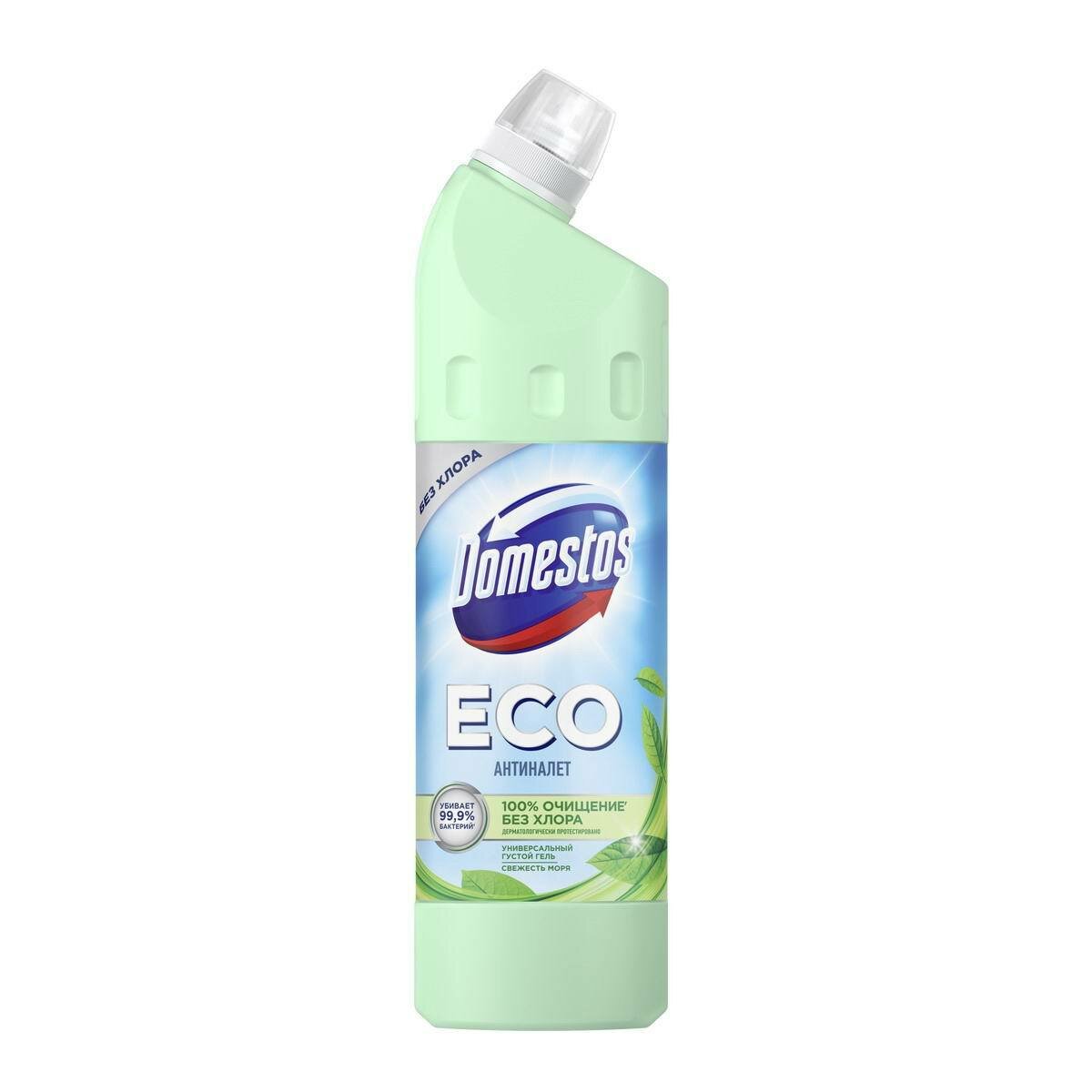 Domestos ЕСО Антиналет, универсальное чистящее эко средство для туалета и ванной, Свежесть Моря, без хлора, 750 мл