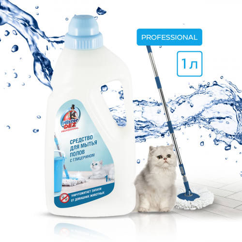 Моющее средство Mister Dez PROFESSIONAL для полов и поверхностей, с глицерином, от запахов домашних животных, 1 л информация: