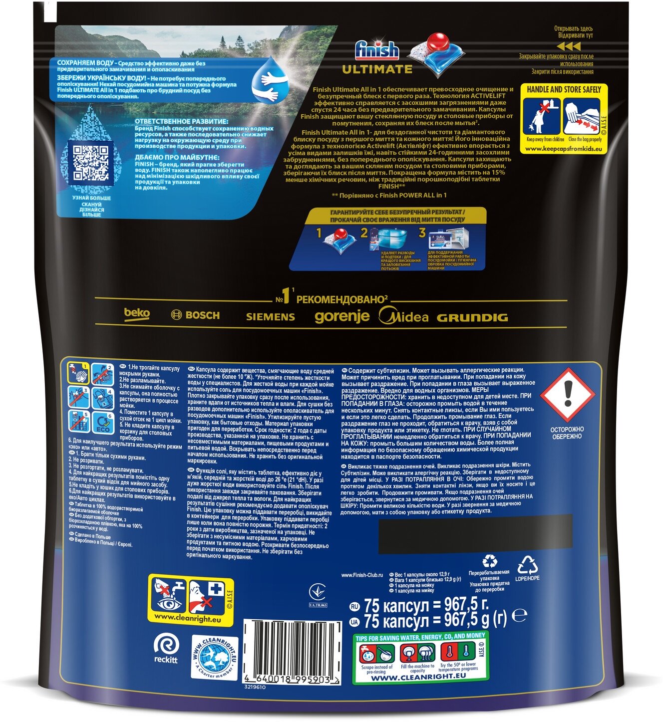 Капсулы для мытья посуды Finish Ultimate для посудомоечной машины, таблетки для посудомоечных машин, 75 шт. информация:
