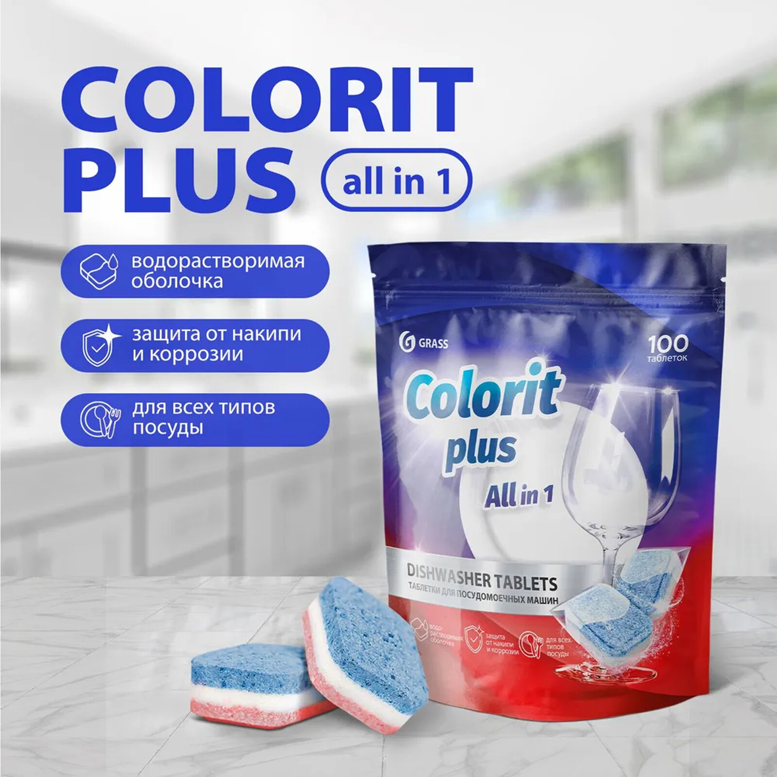 Таблетки для посудомоечных машин Grass Colorit Plus All in 1 упаковка 100 шт. информация:
