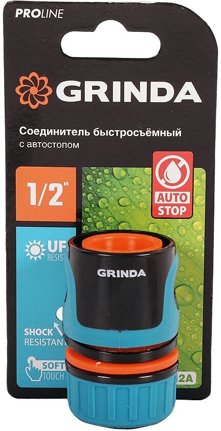 GRINDA PROLine TC-12A, 1/2″, с автостопом, соединитель быстросъёмный для шланга, из ударопрочного пластика с TPR
