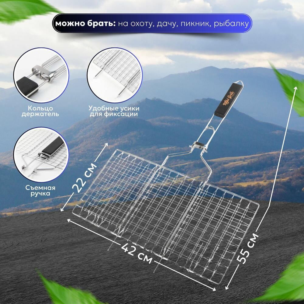 10 цен на Решетка для гриля на мангал ROYAL BBQ 42х22 см для барбекю, большая из нержавейки с толстым прутком, для мяса и овощей