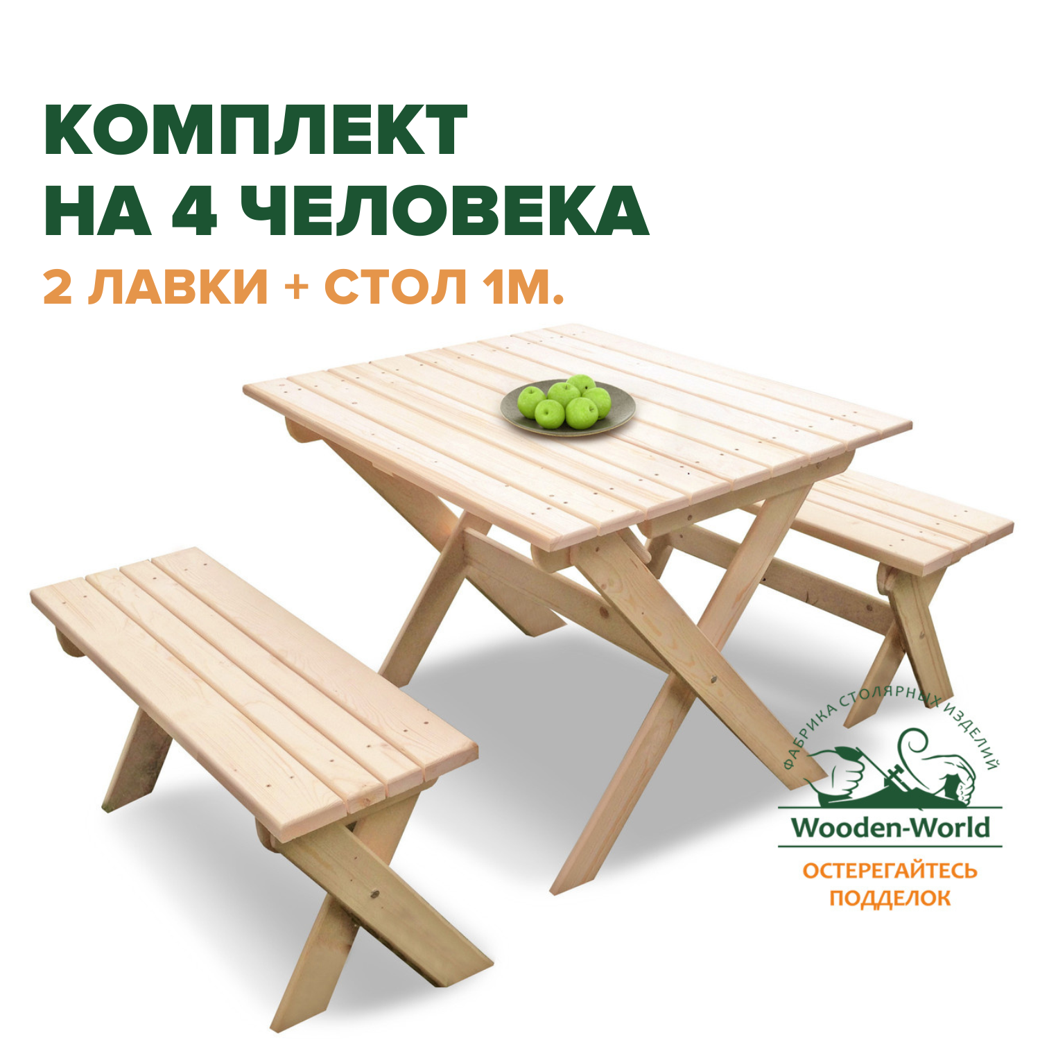 10 цен на Комплект садовой мебели складной (стол 1м, 2 лавки) на 4 человек