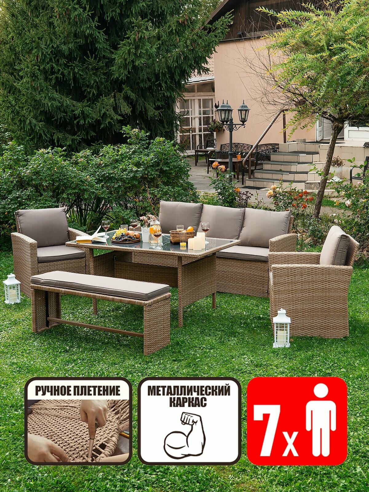 Комплект садовой мебели для дачи Палермо-7 из искусственного ротанга, пшеничный 89 540 ₽