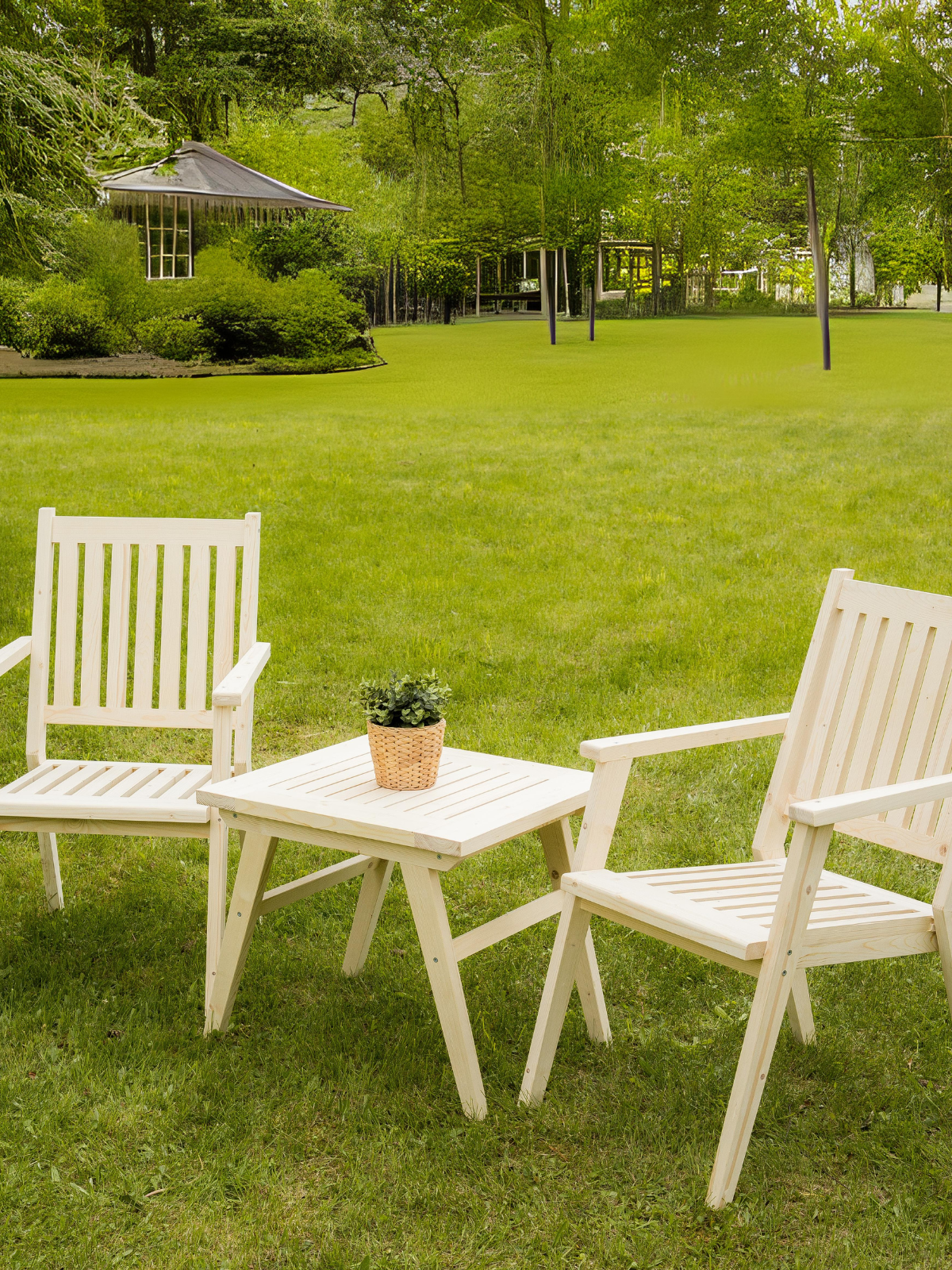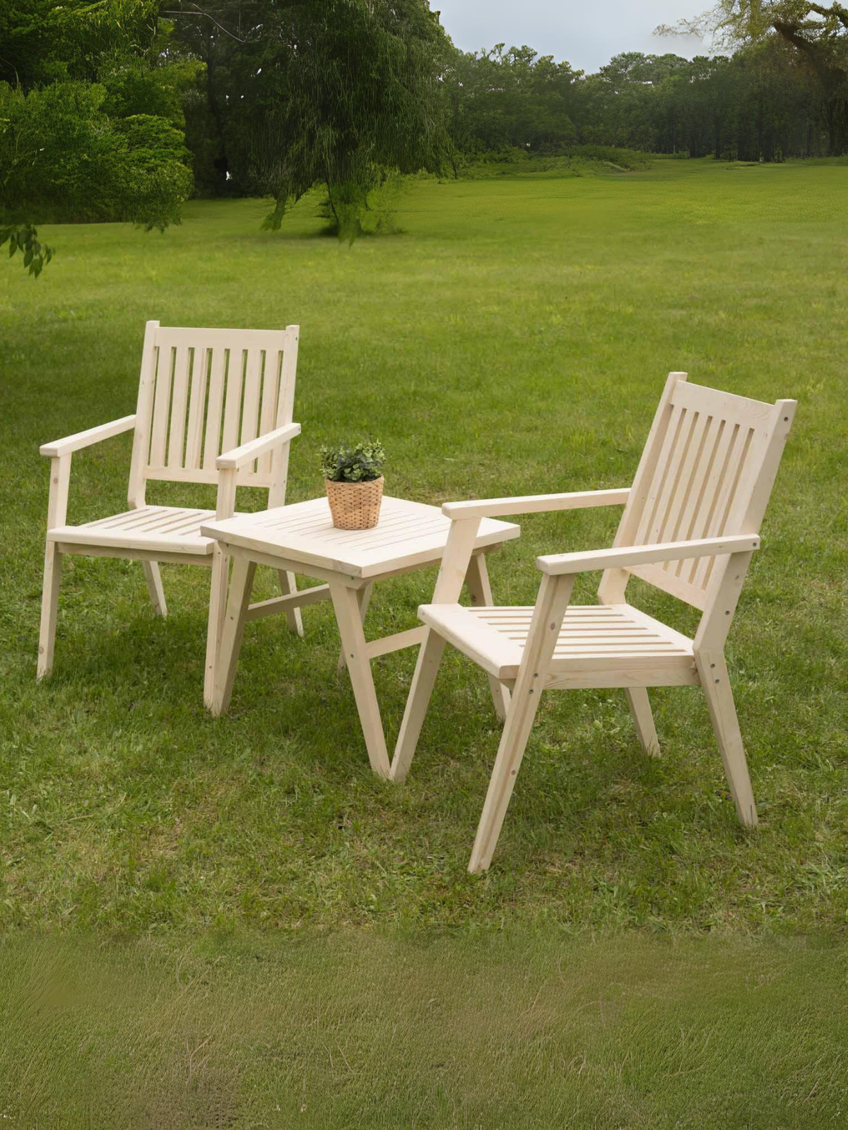 Комплект садовой мебели из массива дерева (столик кофейный, 2 стула со спинкой) на 2 человека информация: