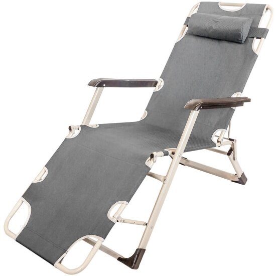 Шезлонг складной с подголовником и подлокотниками (510х1770мм, серый) WMC TOOLS WMC-FG-HY-8007G 5 125 ₽