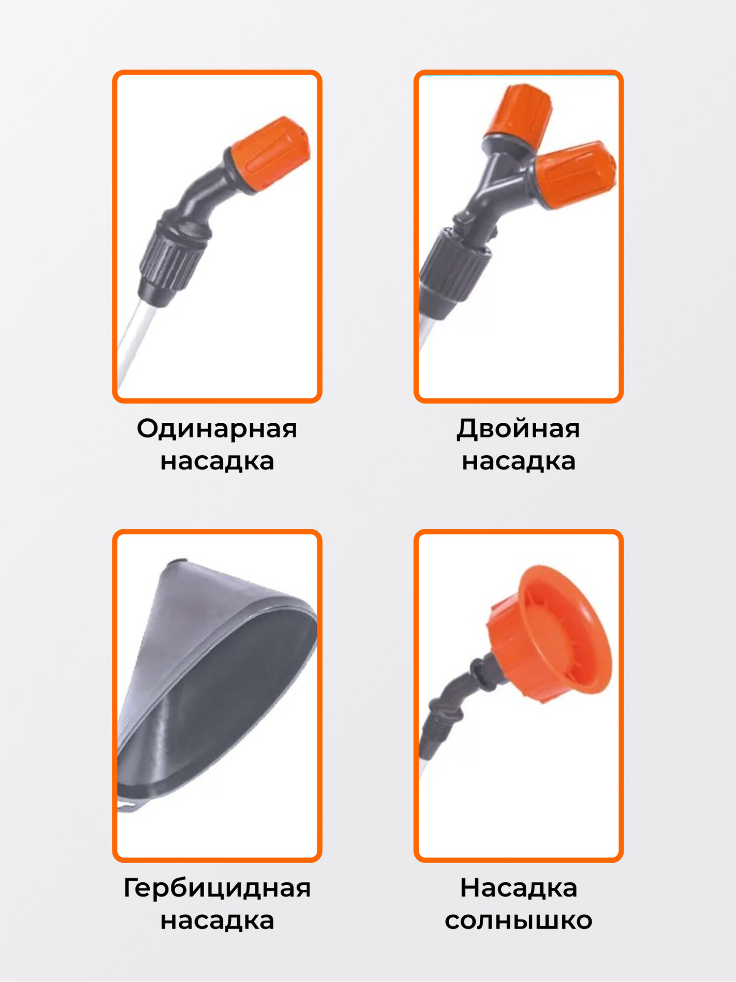 | Комплектация | Бак, ремень, брандспойт, инструкция, четыре насадки |