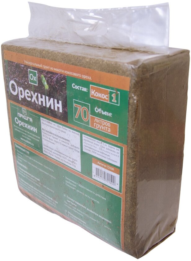 Кокосовый брикет Орехнин 1 Nekura 70 литров информация: