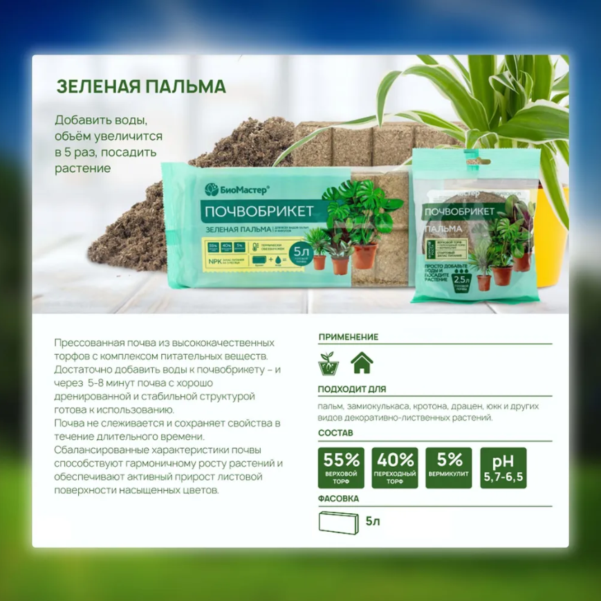 Комплект Почвобрикет Пальма, БиоМастер 2,5 л 3 штуки информация:
