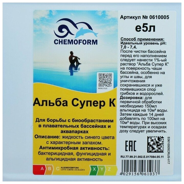 Средство для борьбы с водорослями и бактериями Chemoform Альба Супер К 5 л 0610005 .