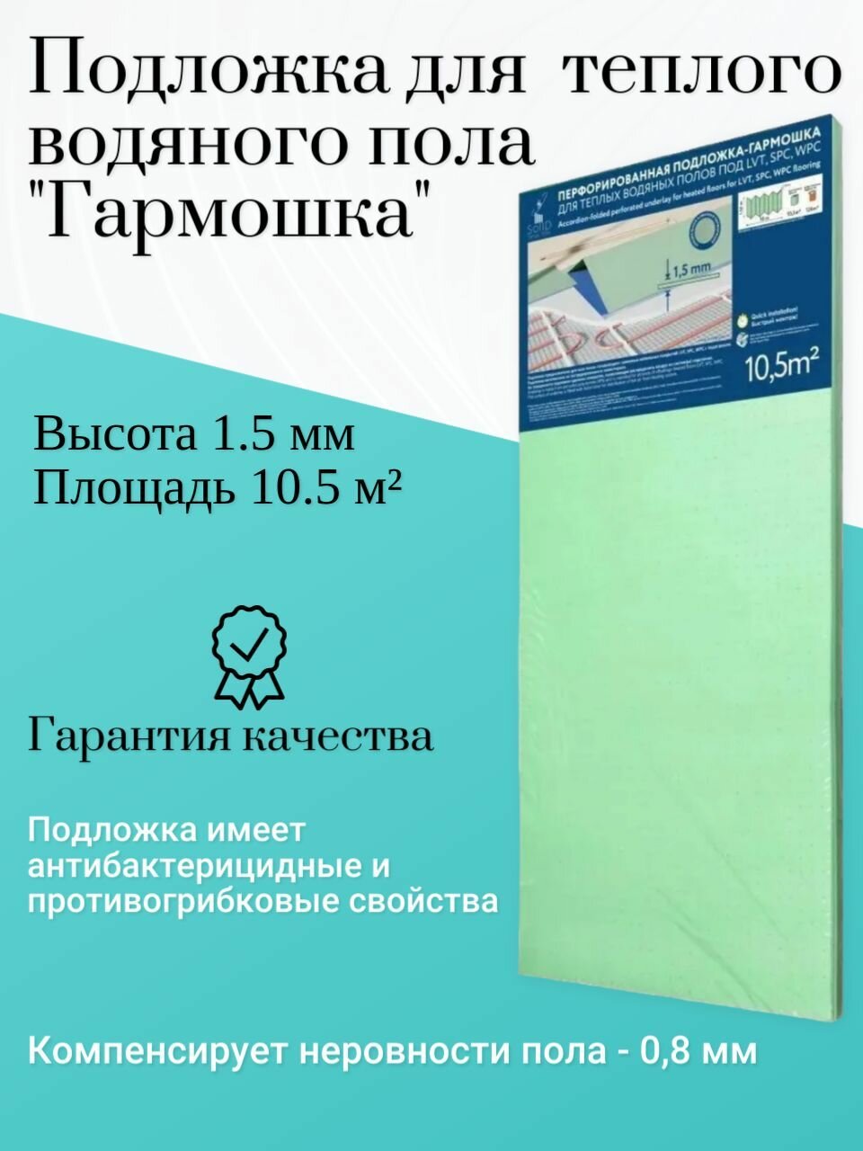 Отзывы на Подложка Гармошка ( 10,5м2) Solid для теплого водяного пола под Ламинат, Паркет, ПВХ, LVT, SPC, WPC. толщина 1.5 мм