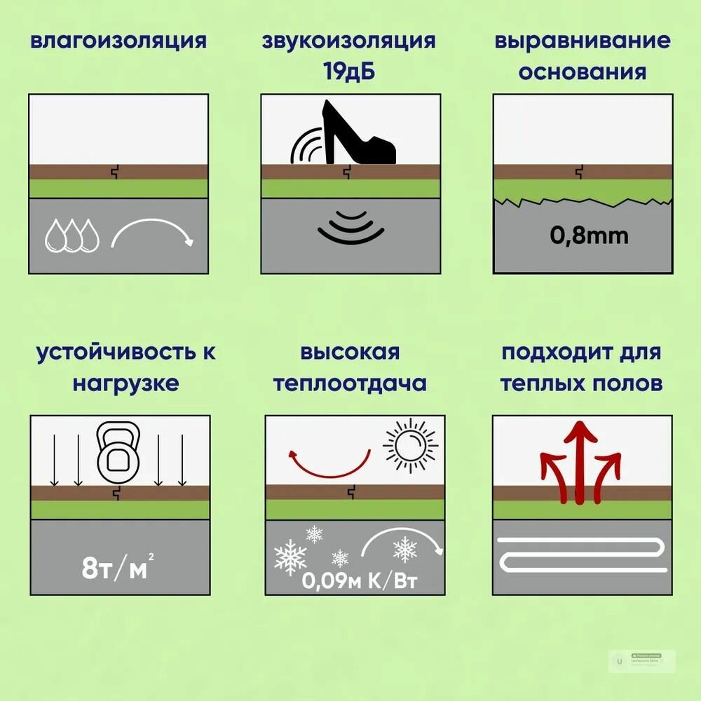 Подложка гармошка под LVT солид 1050х500х1,5мм зеленая (10,5м2) 1 160 ₽