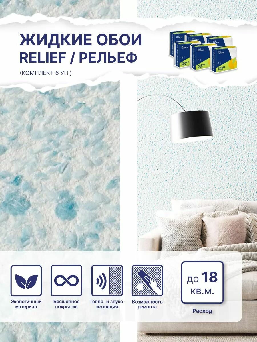 Жидкие обои Silk Plaster Рельеф 329, комплект 6 шт (до 18 кв. м) голубой информация: